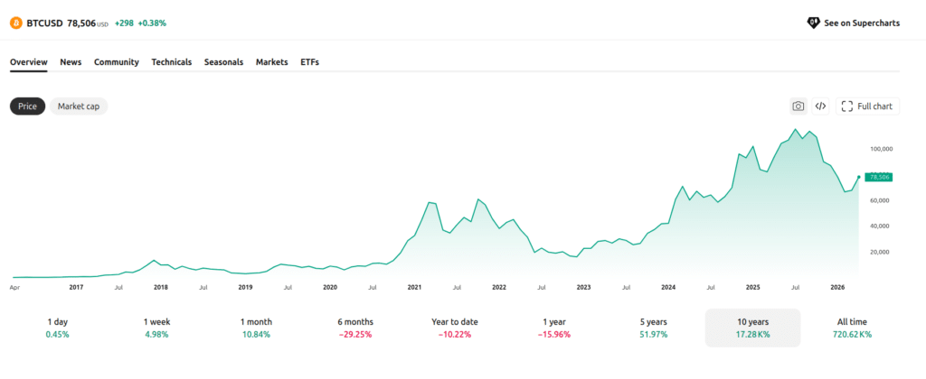 • Volatility Trade-off: BTC has experienced considerable declines (e.g., -74% in 2018 and -64% in 2022), but it has always rebounded to new record highs.