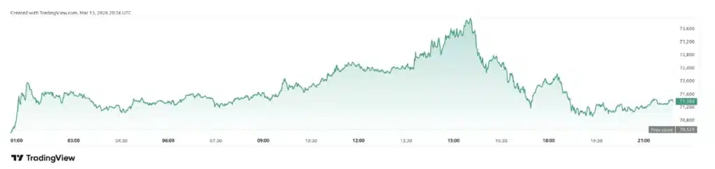 The price on March 13, 2026, is $71,450, a rise of 8% from its lowest point in the week. The price increase has also coincided with a shift in Cumulative Volume Delta. Cumulative Volume Delta is a metric that measures the difference between buy and sell transactions. For the first time in a few weeks, CVD has gone positive for Bitcoin’s major trading platforms, such as Coinbase and Binance.