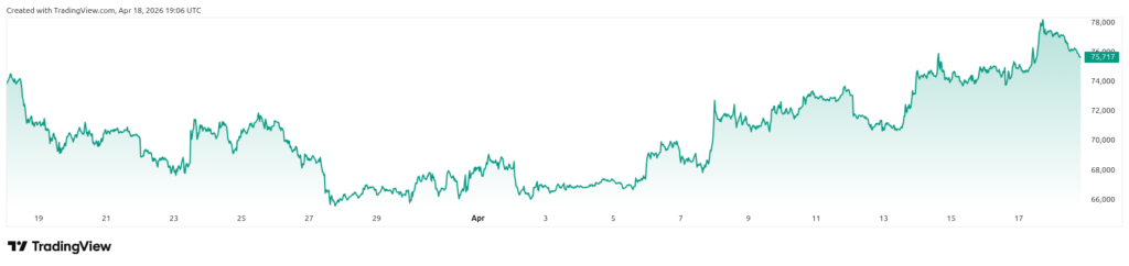 This institutional support has been well received in the market. Today, April 18, 2026, the convergence of conventional finance and digital assets is more apparent than ever. Bitcoin (BTC) has been on a relief rally recently, recovering above $77,000 amid geopolitical de-escalations in the Middle East.