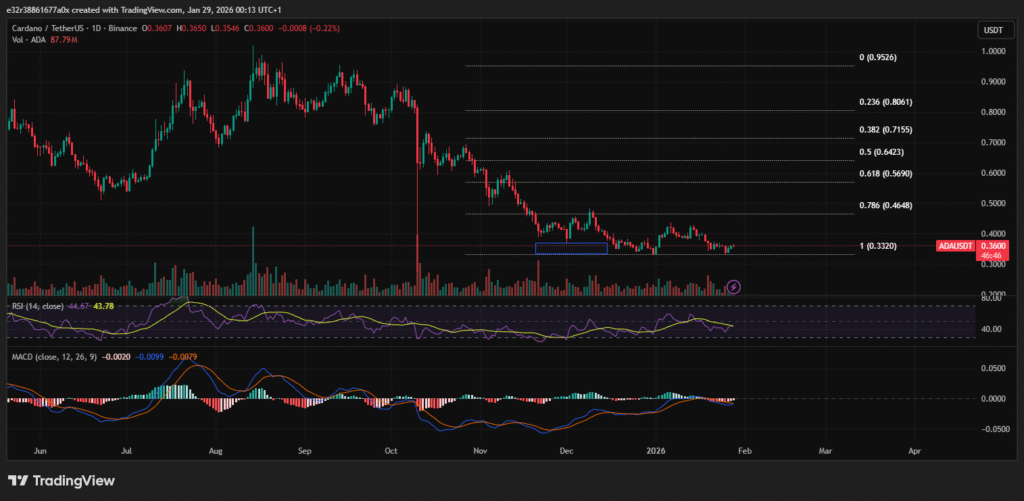 Cardano is showing signs of a steady recovery as of writing, with the asset now trading between $0.36 and $0.41.