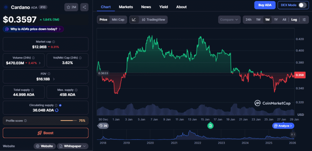 Cardano is showing signs of recovery lately | source: CoinMarketCap