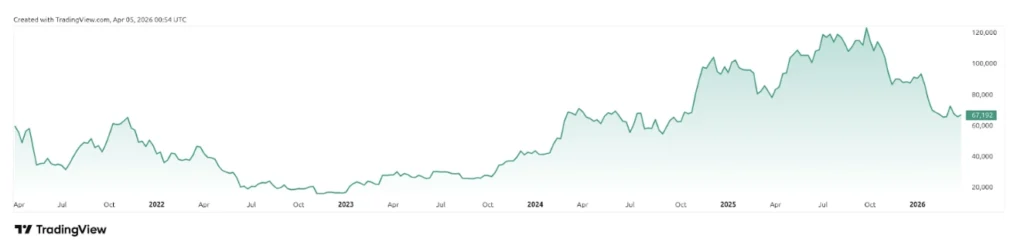 - The Institutional Era (2025-2026): A 52% drawdown that is currently being tested.