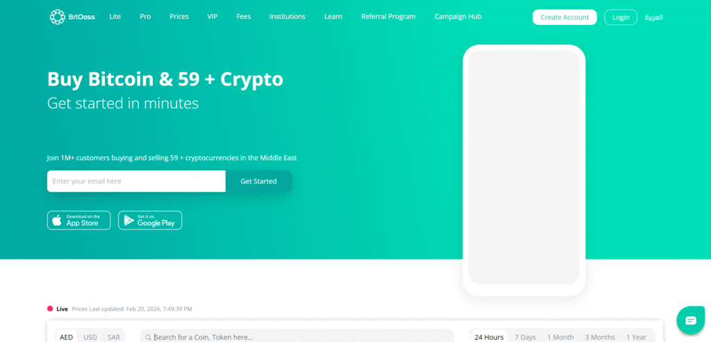 BitOasisExchangeYesYesCustodialLocal UAE users