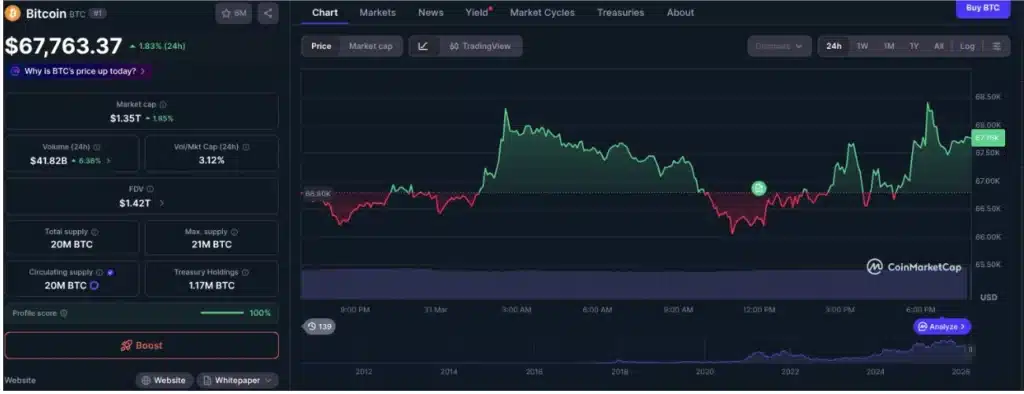 Current Market Snapshot (March 31, 2026) BTC/USD | Source: CoinMarketCap