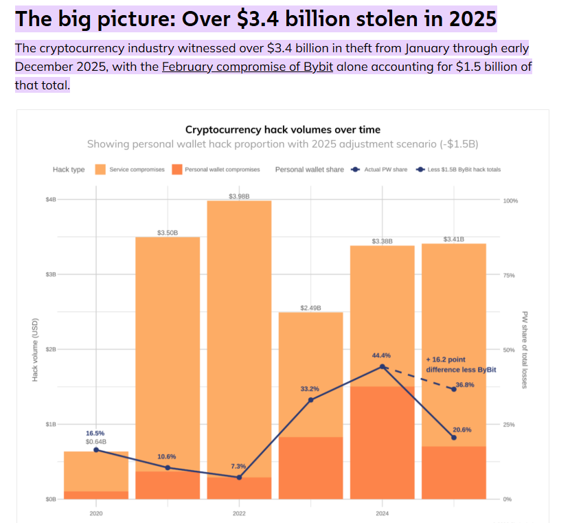 Thefts from North Korea now dominate headlines, yet individual users also face heavy risk. Wallet compromises reached about 158,000 incidents and that figure nearly tripled the counts from 2022.