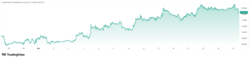 2026 has been a year of price swings. Bitcoin peaked at $108,000 in 2024 and has since corrected. The price has now stabilized in April 2026 and is recovering, above $75,000.