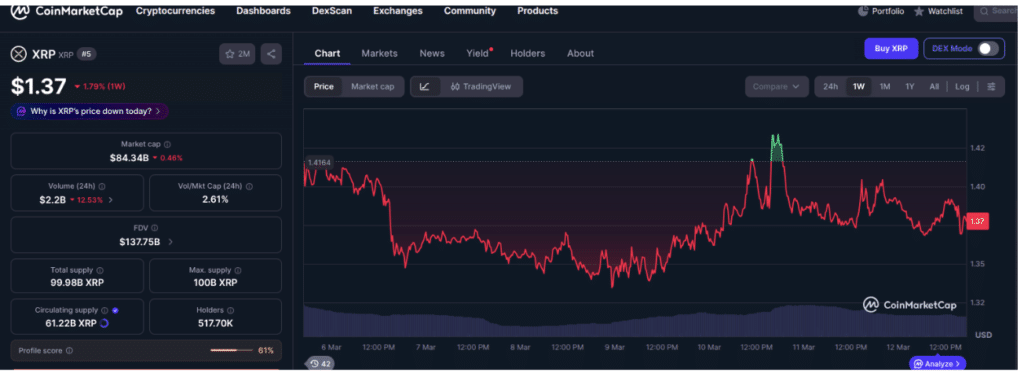While the company itself reaps the benefits from its record-breaking valuation of $50 billion, the token’s valuation is on a whole different path. On March 12, 2026, the XRP token had a value of around $1.39. This is down by more than 53 percent over the past six months and down around 60 percent from its high in the summer of 2025.