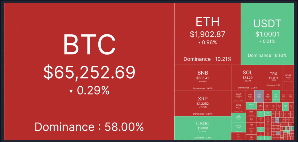 Bitcoin saw a dip below $63,000 during the initial reporting of the attacks on Iran and a subsequent hitback on the UAE, Saudi Arabia, and Qatar. However, the recovery was swift, and within a couple of hours, it got back above $65,000. The same was true for Ethereum and other altcoins: the former quickly rose above $1900 despite a short-term dip below $1840.