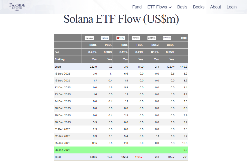On January 5 alone, spot Solana ETFs saw a net inflow of $16.24 million. This shows that larger investors are taking positions over the long-term.