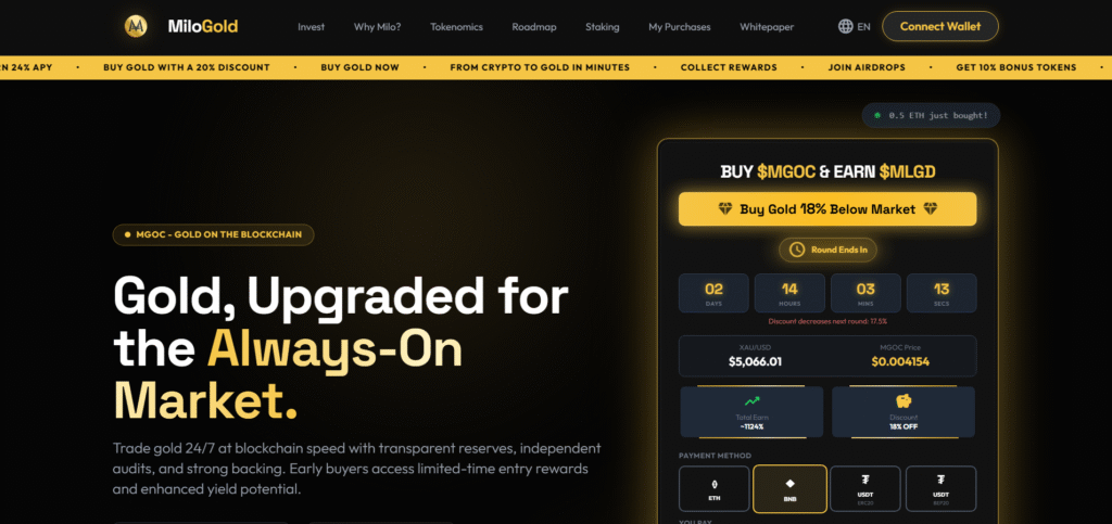 | Milo Gold (MLGD) | Presale | Ends Mar 30, 2026 | Digital Asset / Store-of-Value | Narrative-driven token positioning |