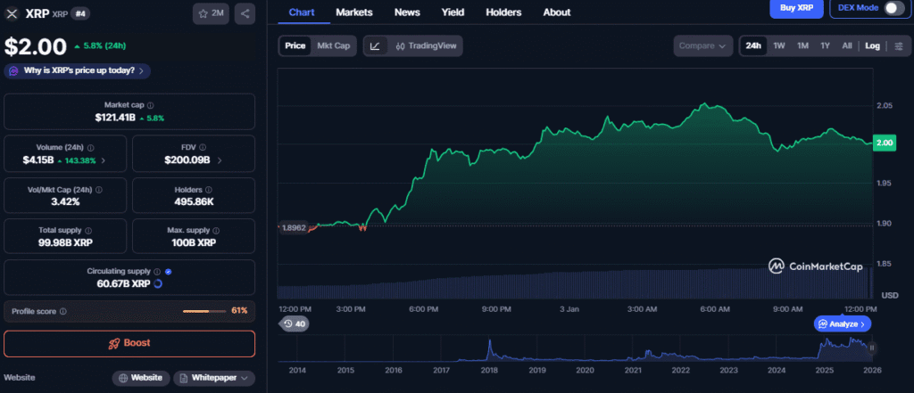 For example, Standard Chartered has restated its forecast that the token could hit $8 by the end of this year. This target implies that XRP could rise by more than 300% from current levels.