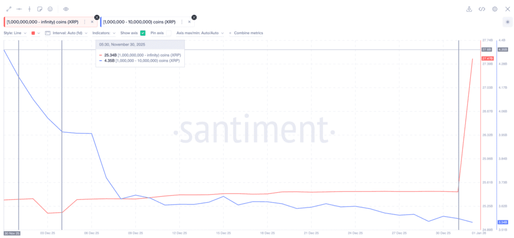 One of the most interesting trends comes from largest holders of the asset. Recent data from Santiment shows that whales holding over 1 billion tokens added $3.6 billion to their holdings in a single day. This massive accumulation indicates that “smart money” investors are preparing for a long term move.